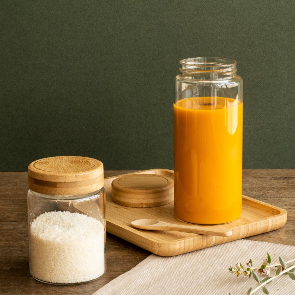 - bambusdeckel mit Silikondichtung zum Schutz vor Feuchtigkeit und Gerüchen