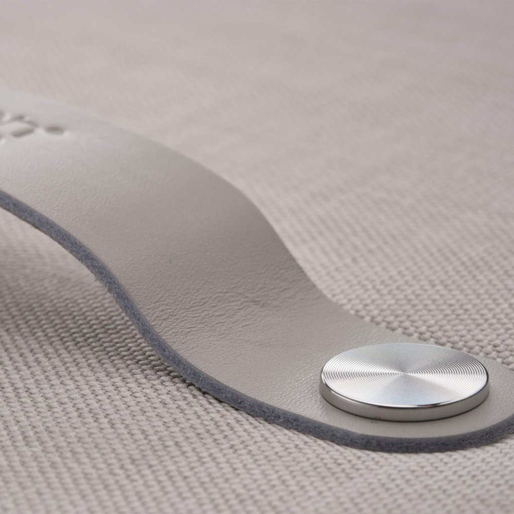 - Der mit Stoff bezogene Deckel wird durch einen Ledergriff ergänzt, der die Handhabung erleichtert und das raffinierte Design unterstreicht.