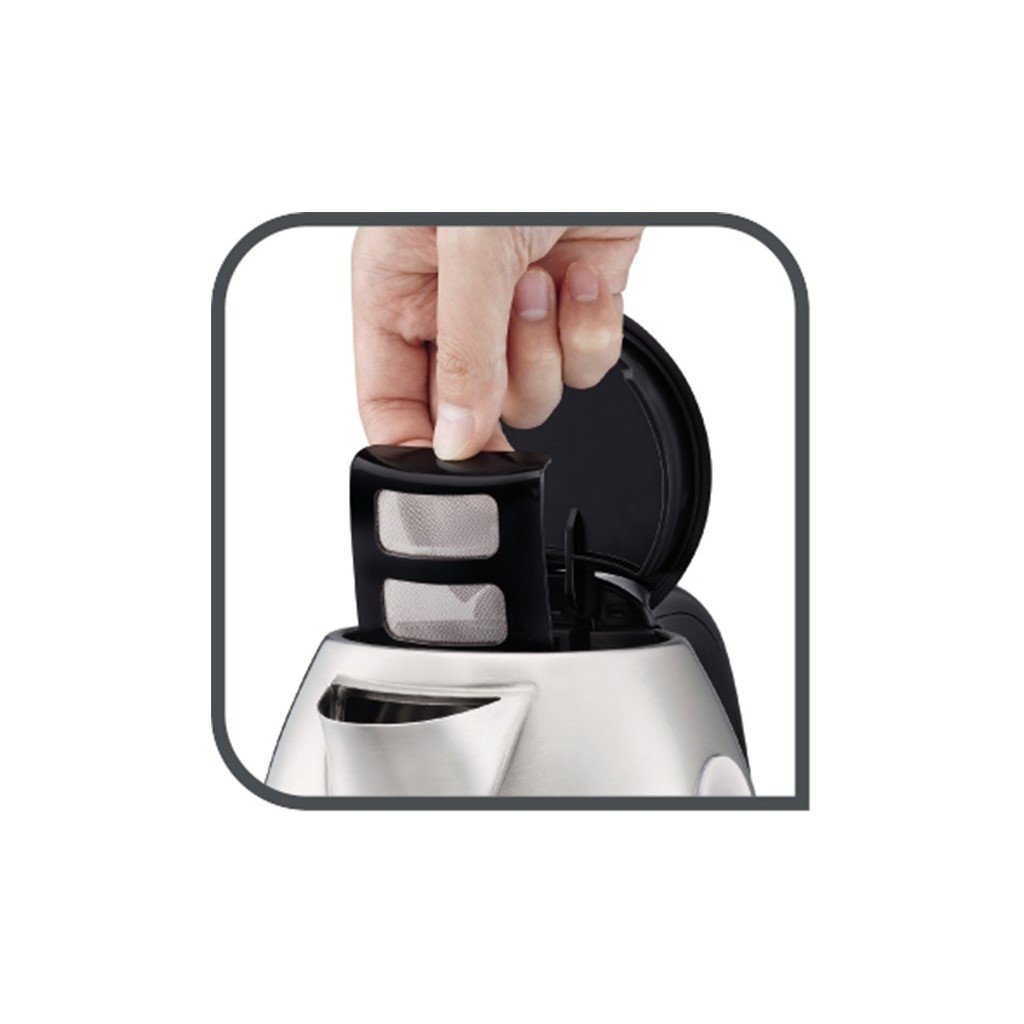 Mit dem Express Control Edelstahl-Wasserkocher können Sie heiße Getränke genießen, wo und wie Sie wollen. Sie können zwischen 7 Wassertemperatur-Einstellungenwählen. Der Wasserkocher verfügt außerdem über eine Temperaturhaltefunktion für 60 Minuten, so dass Sie während dieser Zeit jederzeit wieder eine Tasse Tee aufbrühen können. Dank der versteckten Spirale im Edelstahlboden geht das Erhitzen des Wassers schnell und die Pflege des Wasserkochers ist einfach. Das Fassungsvermögen des Wasserkochers beträgt 1,7 l. Der Wasserkocher bietet außerdem einen um 360° drehbaren Boden, einen herausnehmbaren Filter gegen Kalkablagerungen, eine Öffnungshilfe für den Deckel. Um einen schnellen Überblick über die Wassermenge im Wasserkocher zu erhalten, wird auf beiden Seiten der Wassermarke platziert.