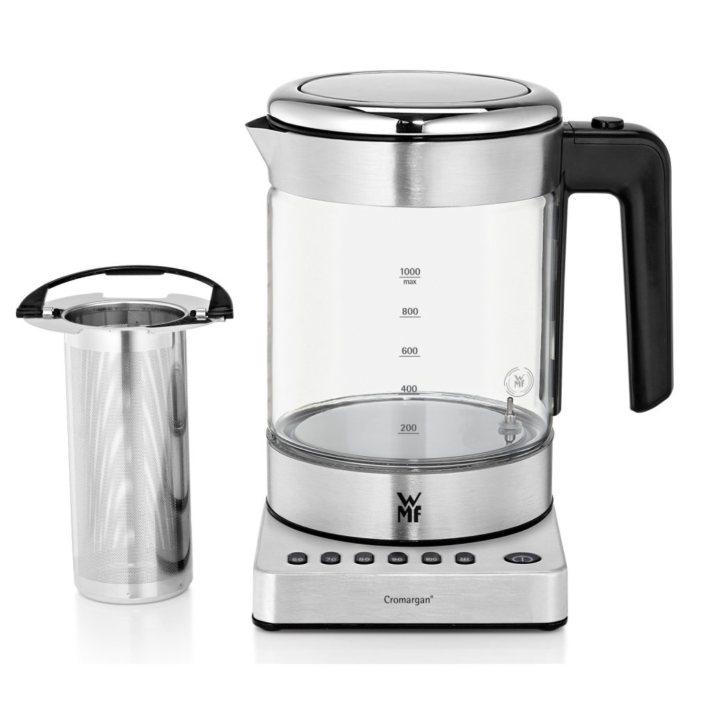 Mit dem neuen WMF KITCHENminis®-Wasserkocher ist heißes Wasser nicht mehr nur heißes Wasser. Fünf verschiedene Temperatureinstellungen ermöglichen die perfekte Wasserzubereitung, außerdem gibt es eine für die perfekte Teetemperatur. Und das gewisse Extra: integrierter Teebeutelhalter und Mikrosieb für optimale Aromaentfaltung. Einfach den Tee aufgießen und genießen.