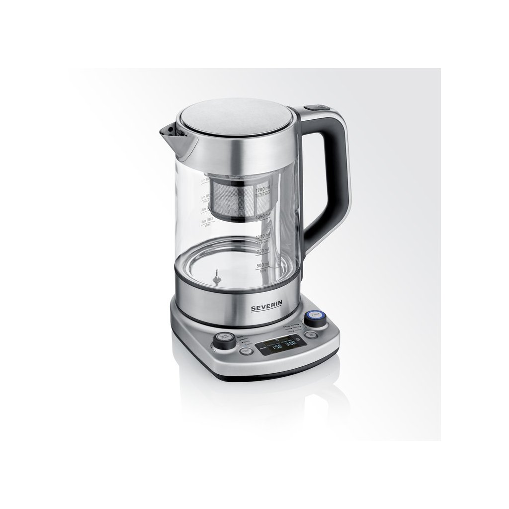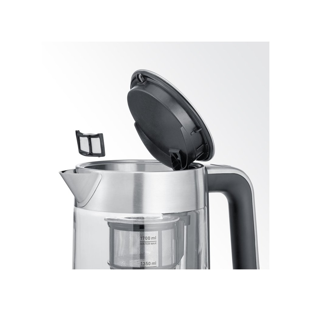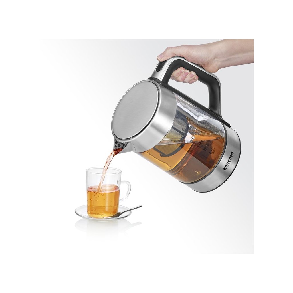 Die stilvolle Glas-Teekanne Severin WK 3422 Deluxe sieht nicht nur gut aus, sondern leistet auch gute Dienste. Glas ist eine sehr geschmackvolle Ergänzung, die den Wasserkocher zu einem großartigen Gerät für den modernen Haushalt macht. Der Wasserkocher erhitzt das Wasser dank seiner 3000 W Leistungsaufnahme sehr schnell , so dass Sie nicht lange auf Kaffee oder Tee warten müssen. Der Hauptvorteil ist sein Volumen von 1,5 l und der herausnehmbare Filter. Der Wasserkocher verfügt über einen eingebauten Überhitzungsschutz, wenn er ohne Wasser eingeschaltet wird. Die Heizspirale des Severin WK 3422 Deluxe ist nicht sichtbar, da sie unter dem Heizsockel verborgen ist.