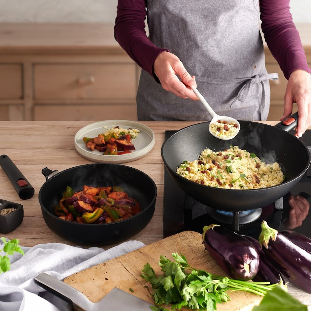 - Die antihaftbeschichtete Wok Woll Pfanne ECO LITE IND QXR mit einem Durchmesser von 30 cm und einem Volumen von 4,1 Litern eignet sich ideal für die Zubereitung asiatischer Gerichte und größerer Portionen an Mahlzeiten für die ganze Familie